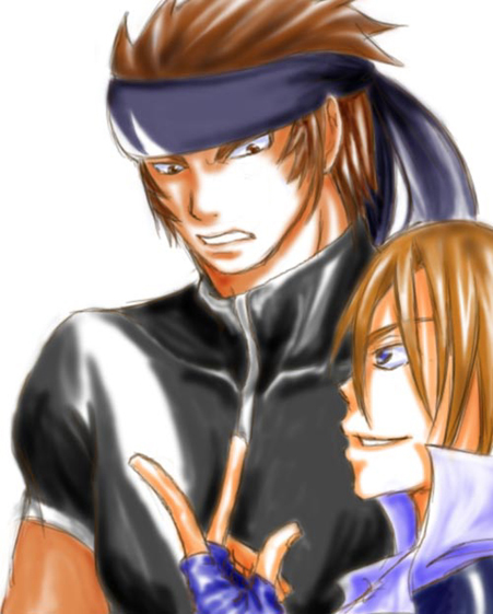 TOP絵の元絵 何話してるんでしょうねー。 会話文書いてみようかと思いましたが、 全然思いつきませんでした・・・。 戦闘後の傷だらけな奴らも描きたい・・・(笑) 誰かオイラにEDを見せて下さい・・・(泣) 絵にカーソル当ててみてください。遊んでみたんで。 クサナギはKOF元祖主人公君デス。 いつの間にか俺が年上になっちゃったヨー(泣) マガZで身長発表される前だったから ゼンの方が背高い・・・(^-^;) TOP掲載期間 5/7〜6/3